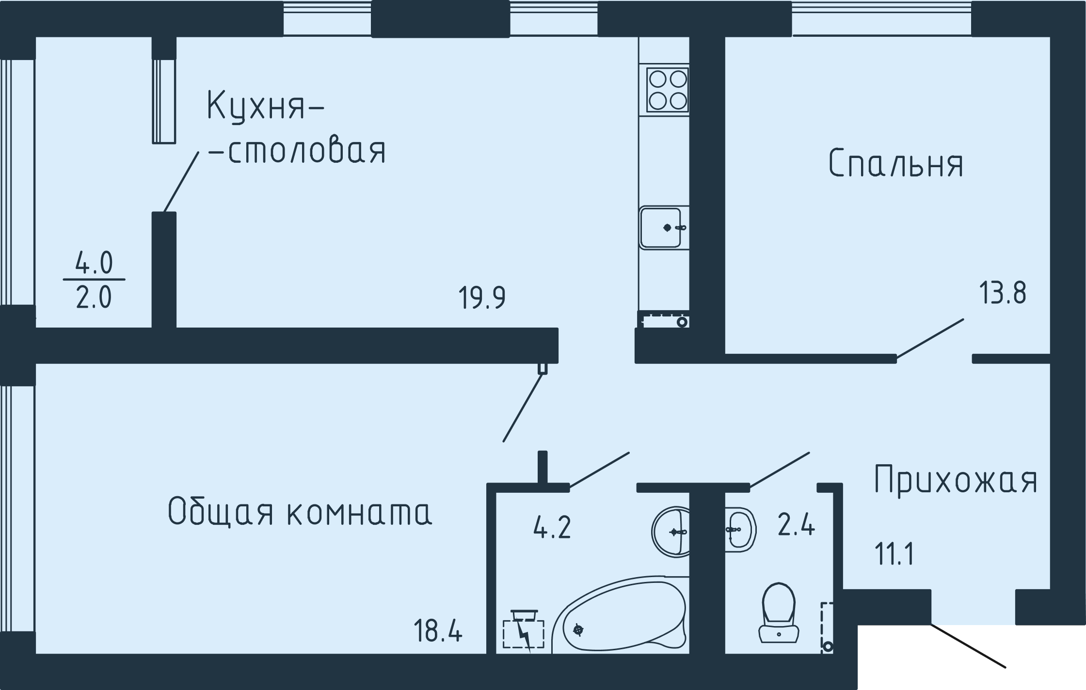 Двухкомнатная квартира №50